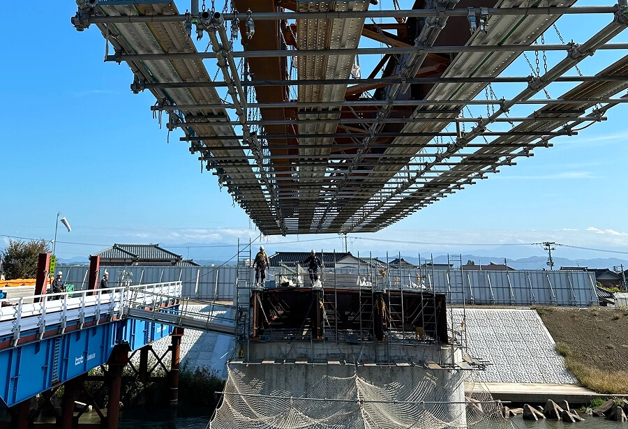 新しい橋の組み立てのほか、古い橋の修繕・撤去も行っています。
